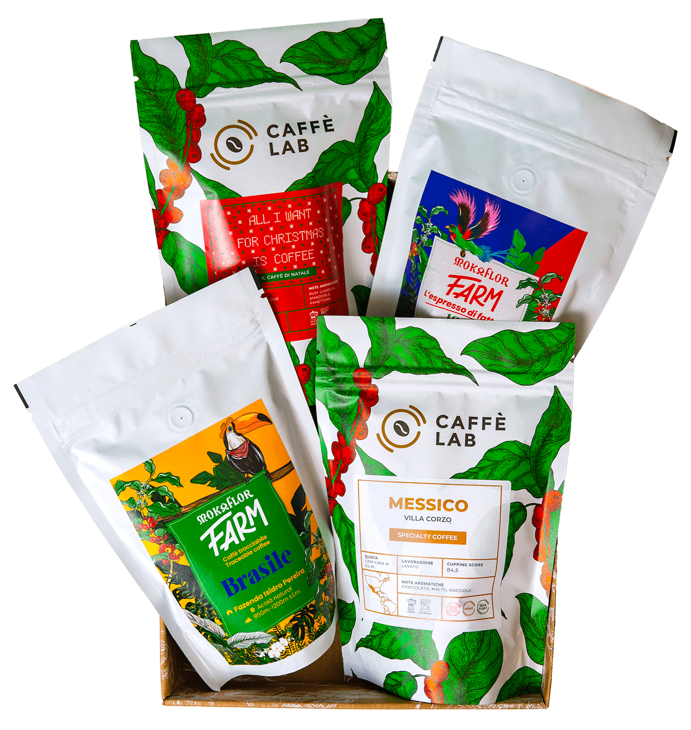 Your kit includes 4 specialty coffees (250g each), roasted for moka/espresso: