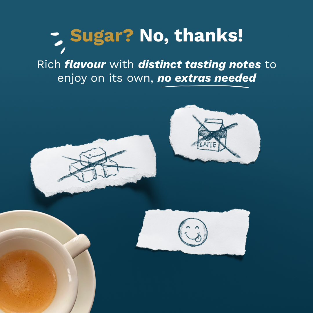 Reclaim the coffee ritual. Savour a cup full of nuanced flavours, perfect on its own, no extras needed.